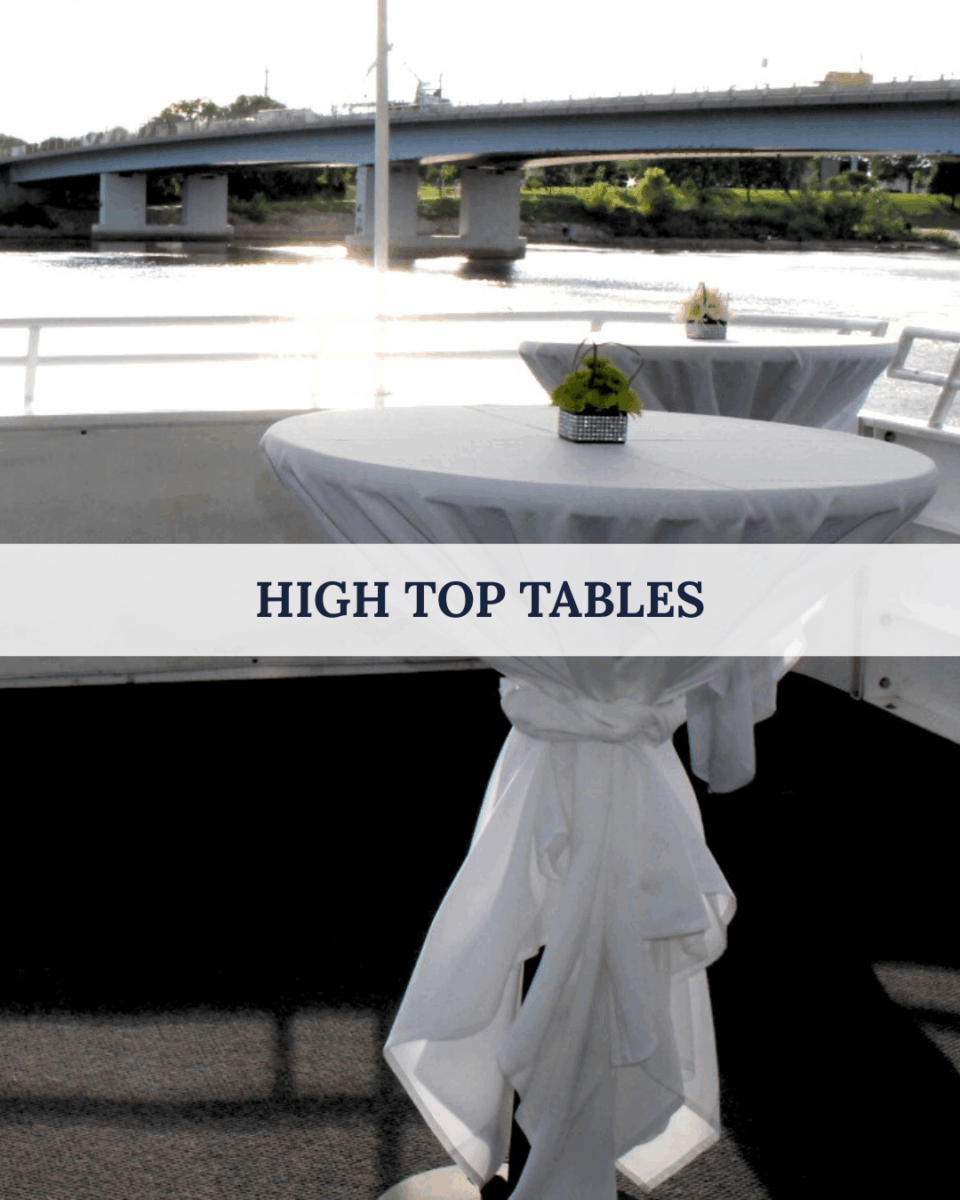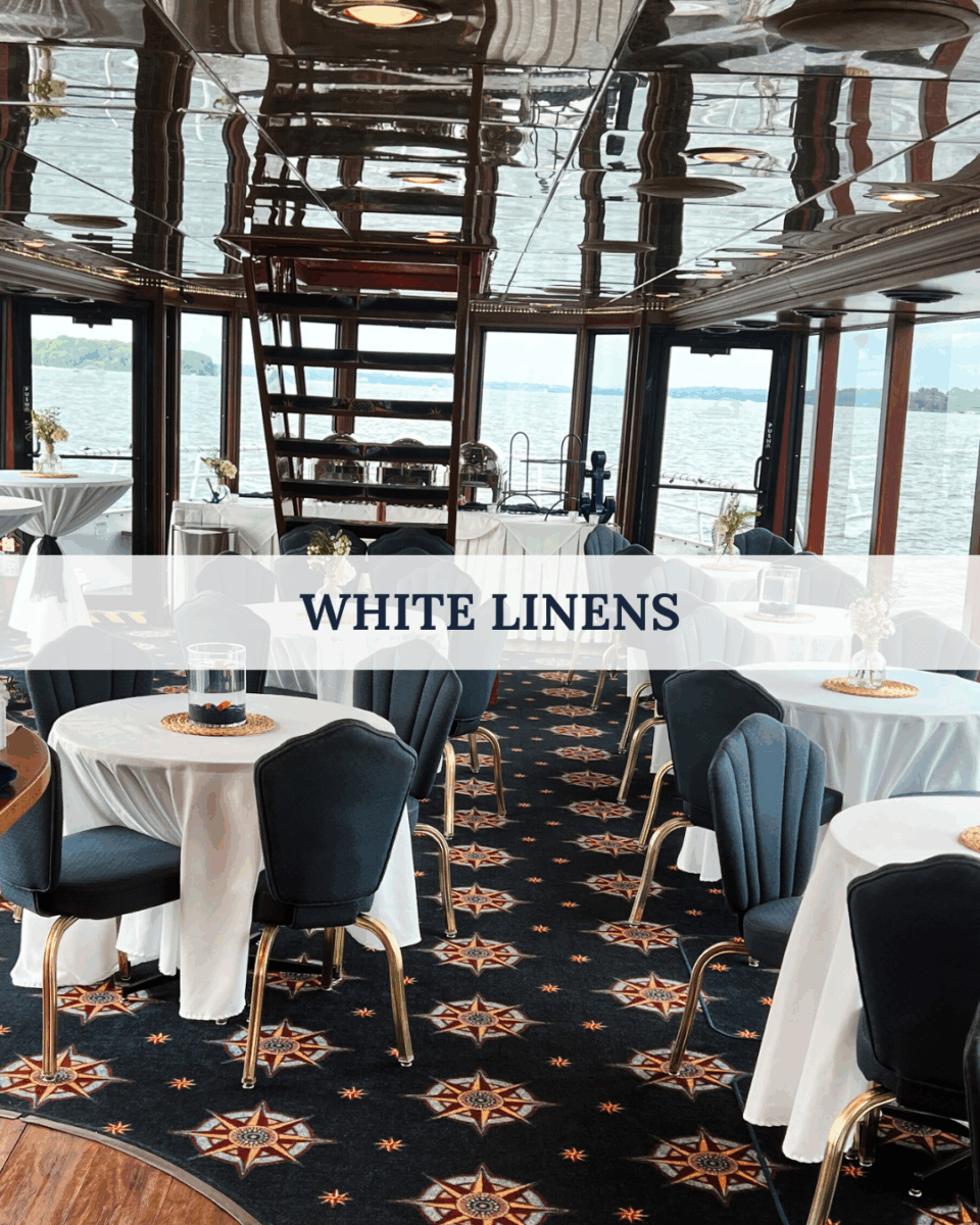 White tablecloths that can be added indoors and outdoors.